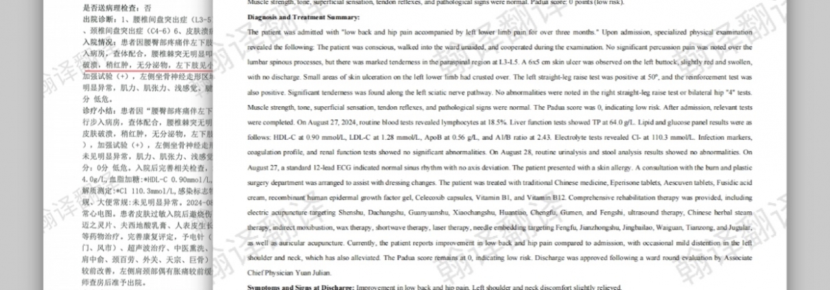 在本次病历翻译项目中,我们准确处理了专业医学术语的转换: