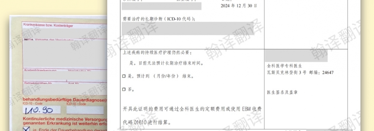 成都翻译公司|德语翻译公司:德国诊疗单译中,跨国就医,回国就诊门诊病历处方笺翻译认证