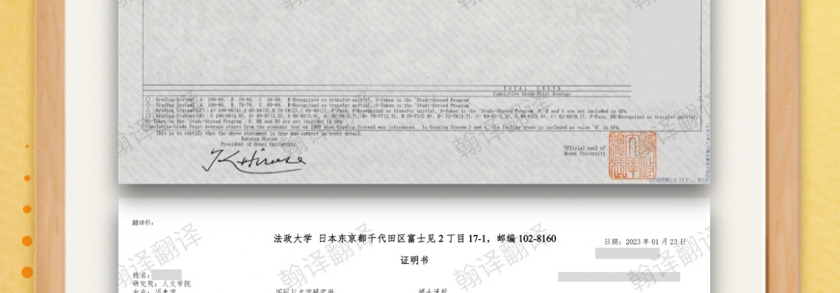 日本法政大学的成绩单通常以英语或日语形式出具,而中国的官方语言是中文,国内的教育部门、用人单位、人才中心等机构在处理留学回国人员事务时,均要求提供中文翻译件。成都翰译翻译公司提醒您,准确的成绩单翻译对于回国办理落户、学历认证、档案存放、职位申请等事宜至关重要,是确保相关机构能够准确理解您课程名称、成绩、学分及学位授予情况的关键步骤。