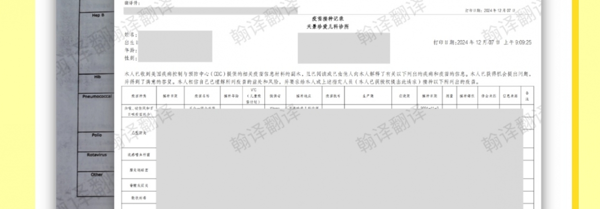 A:需要疫苗接种记录清晰扫描件及个人信息。成都翰译翻译公司建议提供完整的记录信息。