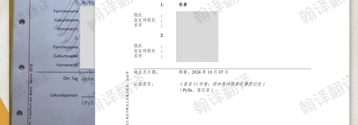 将德国出生证明翻译成中文是一项要求严谨专业的工作。选择一家可靠的专业翻译公司,是确保文件准确性、合规性与可用性的关键。翰译翻译致力于为您提供安全、高效、精准的翻译服务。如果您有相关需求或任何疑问,欢迎随时联系我们!