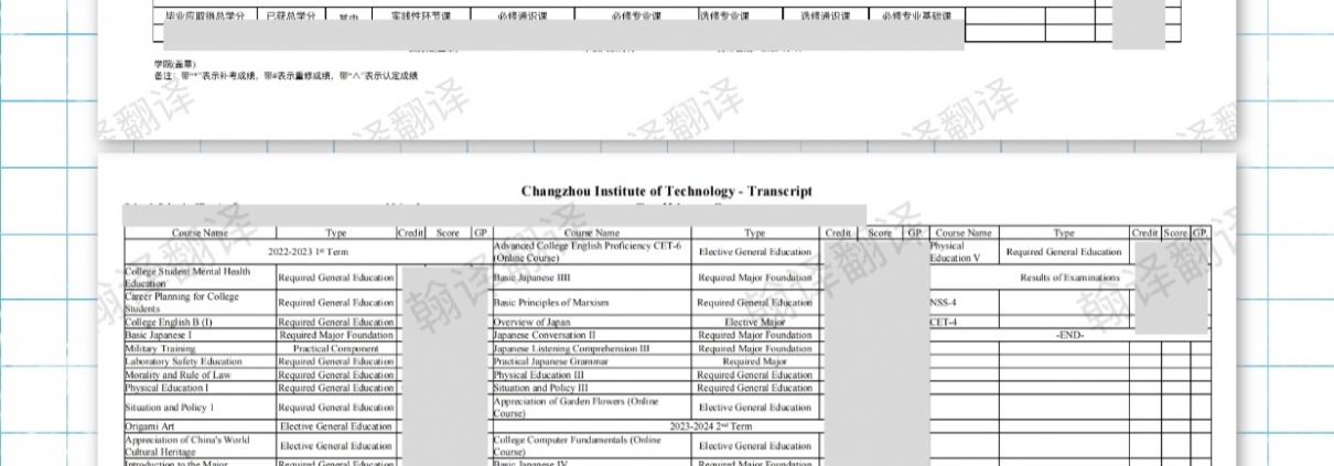 成都翻译公司|常州工学院成绩单中译英翻译:专业服务助力学子走向世界