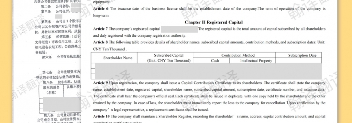 Q1:翻译公司章程需要提供什么材料?