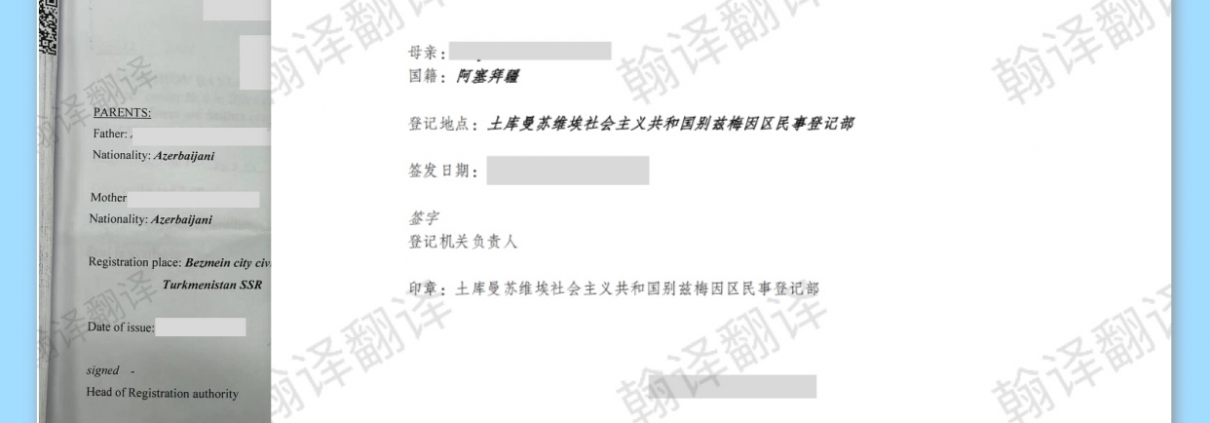 在国际交流日益频繁的今天,各类涉外文件的翻译需求也越来越多。无论是留学、移民、办理签证,还是处理其他涉外事务,一份准确规范的出生证翻译件都至关重要。最近,成都翰译翻译公司就完成了一份阿塞拜疆出生证的翻译工作,今天来和大家分享一下这类文件的翻译要点与专业价值。