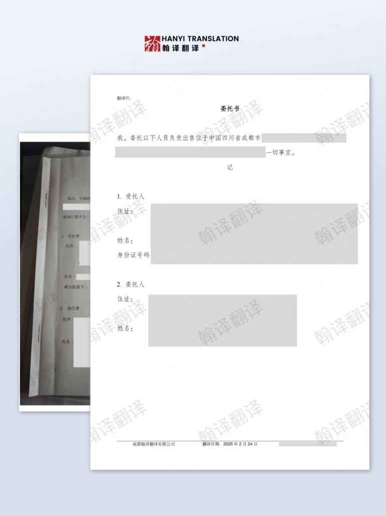 今天,成都翰译翻译公司与您分享一个实用翻译案例——日语委托书的中文翻译。作为一家专业的翻译服务机构,我们近期完成了一份日语委托书的翻译工作,其中涉及诸多值得关注的细节,特此整理分享,供有类似需求的客户参考。