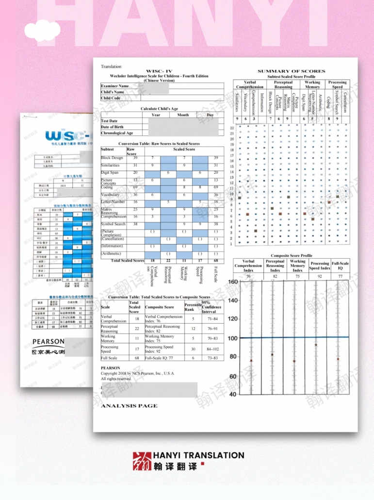 韦氏儿童智力量表作为心理学和教育学领域的重要评估工具,其翻译工作具有特殊的重要意义。量表中包含大量专业心理学术语,例如"言语理解指数"必须准确译为"Verbal Comprehension Index","知觉推理指数"需对应"Perceptual Reasoning Index"。这些专业术语的翻译必须严格遵循心理学领域的国际惯例,确保全球范围内的专业人士能够准确理解量表内容。成都翰译翻译公司强调,专业术语的准确转换是保证量表科学性的基础。