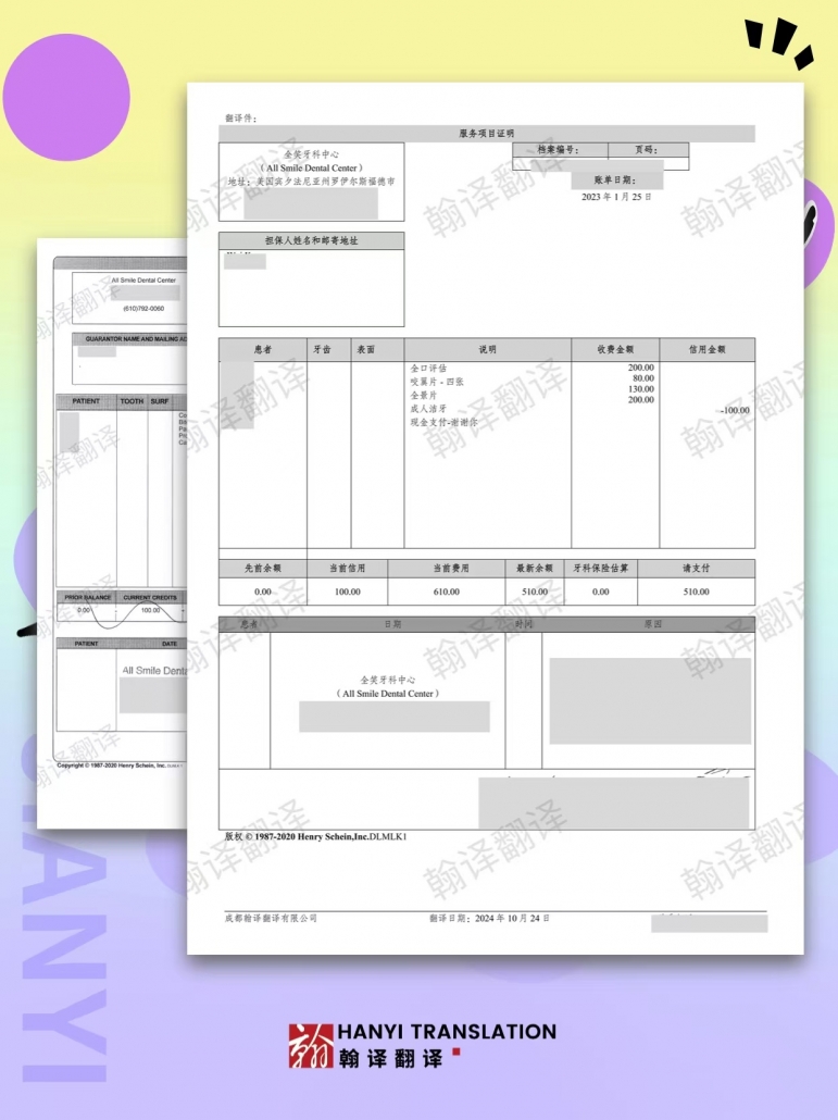 仔细核对服务说明是处理医疗账单时必不可少但常被忽视的步骤。特别是在牙科等专科治疗领域,确认实际接受的服务与账单所列项目是否一致至关重要。医疗账单和发票上常包含大量专业医学术语,为了顺利进行保险理赔或其他后续服务,建议委托具备资质的专业翻译机构提供翻译服务并加盖翻译专用章。成都翰译翻译公司强调,专业翻译不仅能确保信息准确传达,还能为理赔流程提供可靠依据。