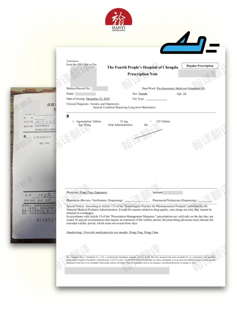 出国就医或带药时,门诊处方笺的翻译是必不可少的步骤。为确保跨国医疗过程顺利,选择一家专业可靠的翻译服务提供方至关重要。成都翰译翻译公司作为成都本地专业的翻译服务机构,致力于为您提供准确、合规的医学文件翻译,帮助您高效应对出国就医或带药的各类翻译需求。