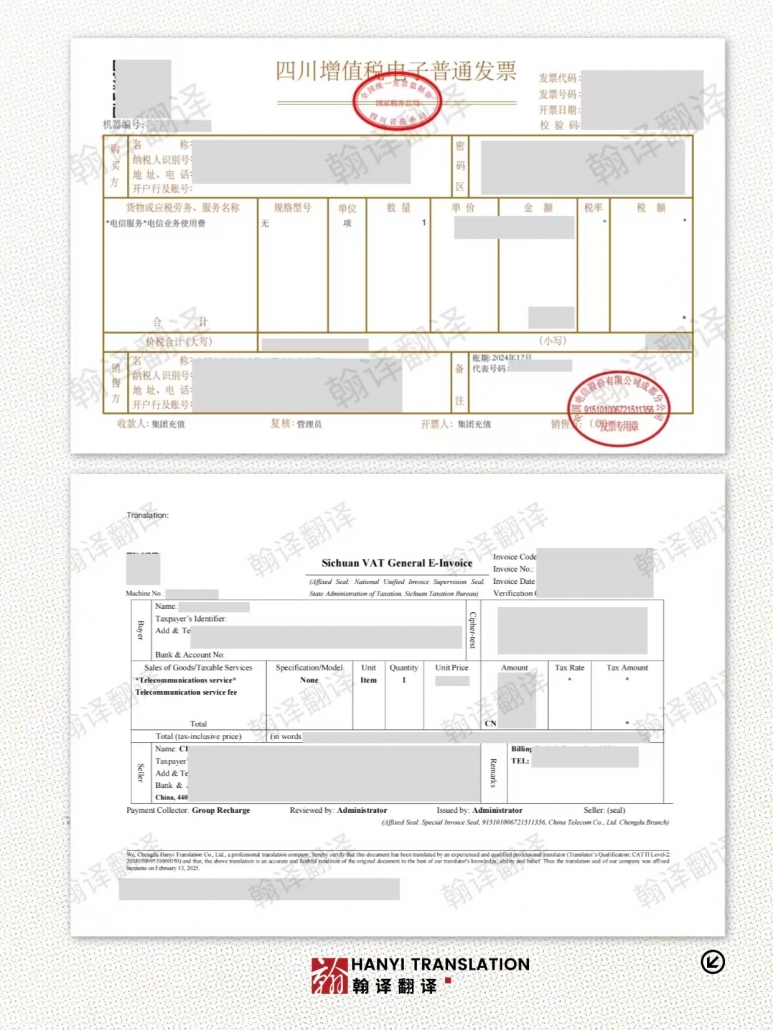 成都翰译翻译公司深耕翻译领域多年,拥有专业的翻译团队和丰富的多语种财务文件处理经验,能够为您提供准确、高效、合规的电子发票翻译服务。如果您有相关翻译需求,欢迎随时联系我们!