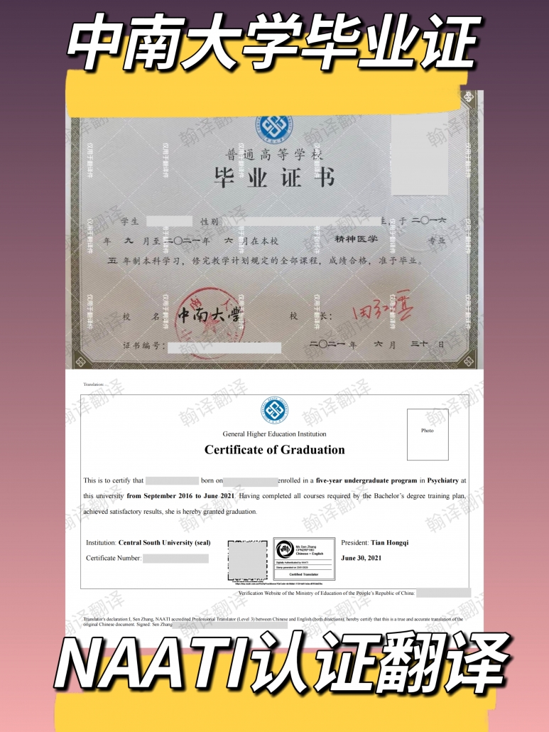 成都翰译翻译公司已成功处理过多份中南大学毕业证的翻译工作,积累了丰富的专业经验。我们提供的NAATI认证翻译服务由经验丰富的持证翻译员亲自完成,严格遵循国际翻译标准,确保每份翻译文件都符合海外机构和院校的要求。无论是中南大学的毕业证书,还是其他重要学术文件,我们都能提供高质量的翻译解决方案,帮助客户顺利通过各类审核。